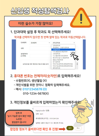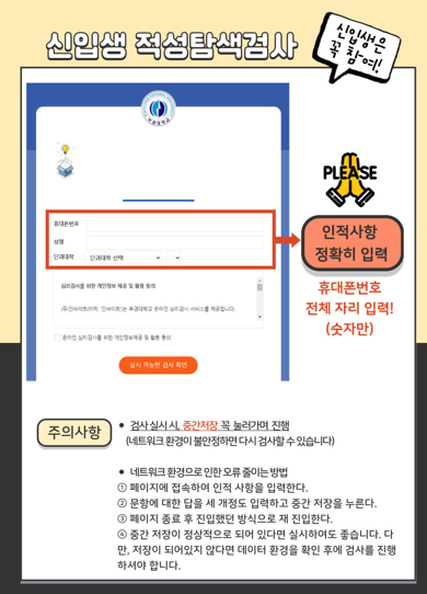 신입생 적성탐색검사 온라인 실시 및 협조 요청